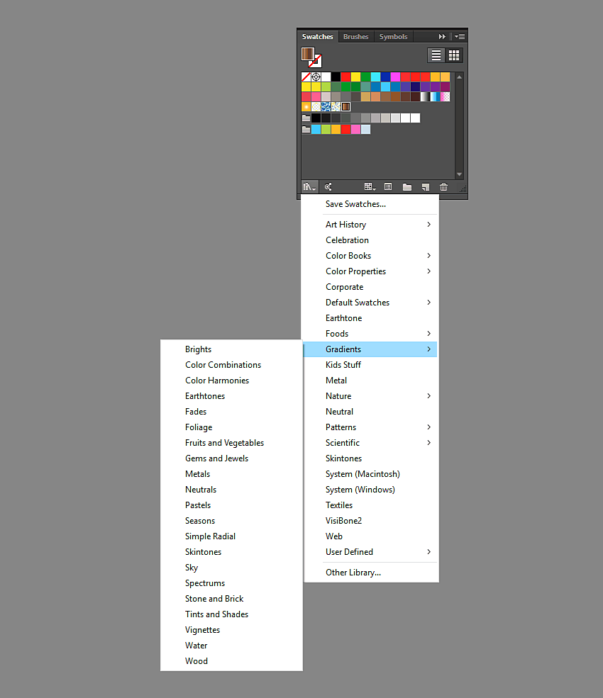 Illustrator предоставляет предустановленный набор градиентов, которые можно использовать на панели «Градиент» или «Образцы». Все созданные вами градиенты также будут найдены на панели «Образцы».