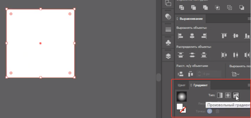 Чтобы создать произвольный градиент выберите объект и в панели Градиент выберите соответствующий пункт.