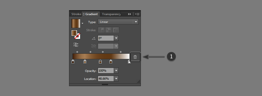 Чтобы удалить цветовую точку, просто выделите ее мышью и нажмите кнопку «Удалить» или перетащите цветовую точку на значок корзины.
