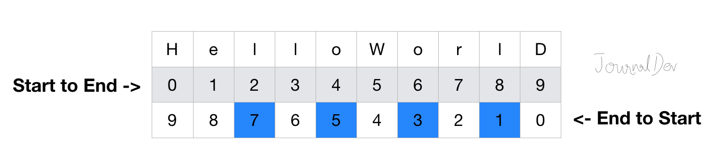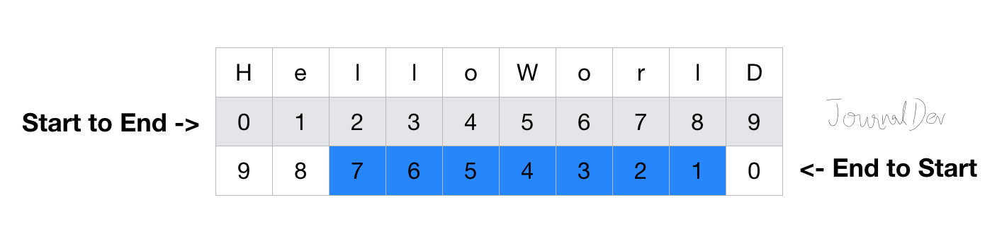 Здесь значения индекса берутся от начала до конца. Подстрока состоит из индексов с 1 по 7 от конца до начала.