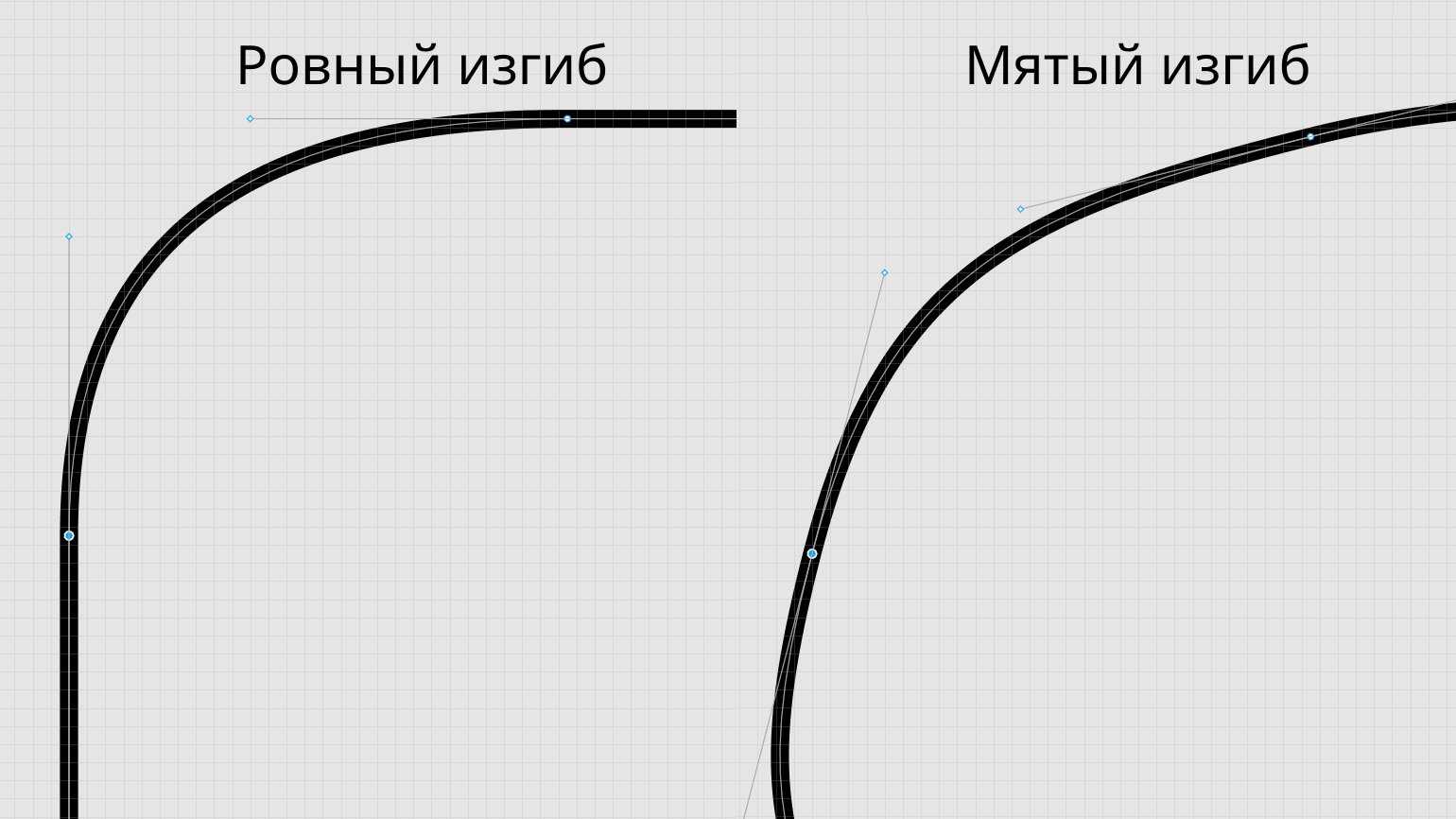 3. В режиме векторного редактора располагайте точки фигуры по направлению шва, а усами регулируйте скругление так, чтобы вектор повторял форму шва.