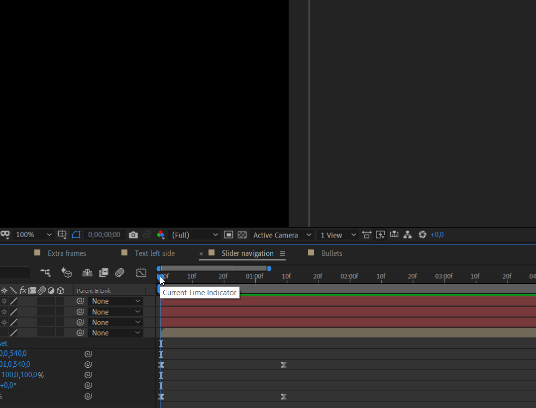 Объедините логотип и меню-бургер в другую композицию, назовите ее Logo. Выделите слой композиции Slider navigation, но пока не открывайте ее. Сдвиньте весь слой на панели Timeline: