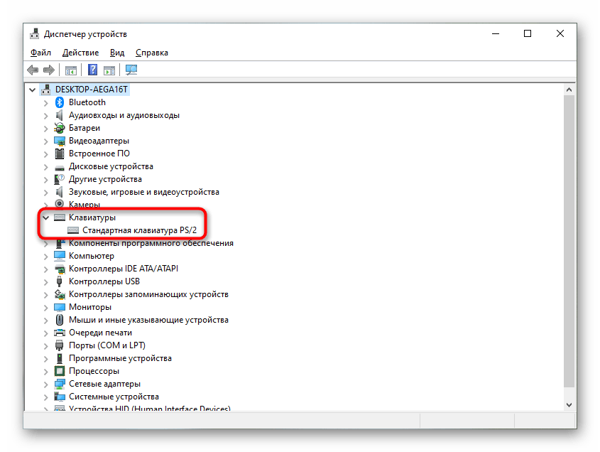 Найдите список «Клавиатуры» и разверните его. Вызовите свойства подключенного устройства, нажав по нему дважды левой кнопкой мыши.