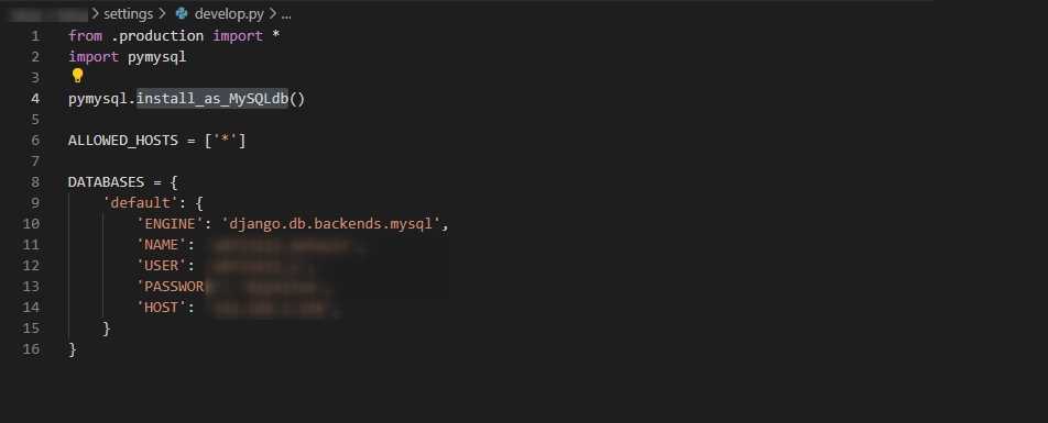 Эти настройки может понадобится положить в другие файлы, такие как ‘__init__.py’ или ‘manage.py’. Это зависит от вашего проекта. Суть в том, что мы должны импортировать pymysql до того, как будет выполнен импорт MySQLdb. Обычно это происходит в ‘settings.py’ в DATABASES.
