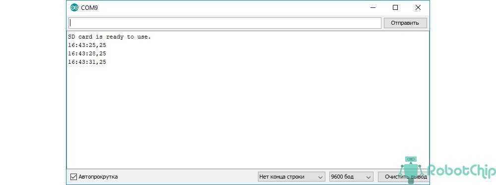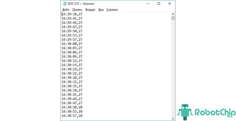 После загрузки скетча Arduino начнет сохранять значения температуры каждые 3 секунды.