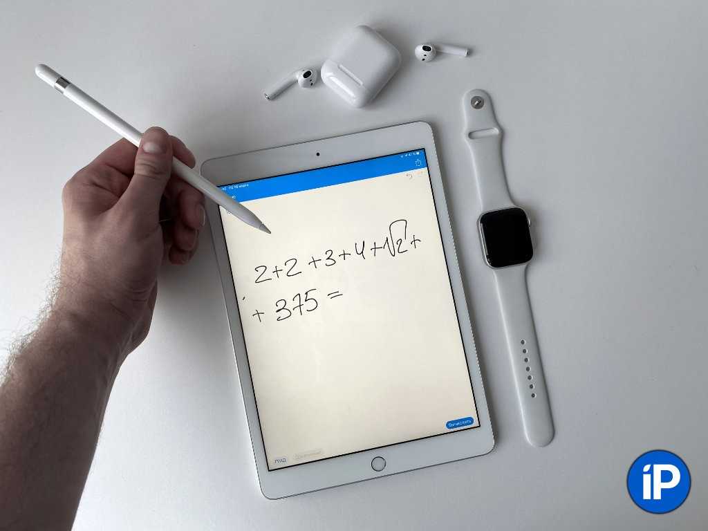 Без Apple Pencil использовать его не так уж удобно — проще необходимый пример просто пальцем на калькуляторе набить. Но фирменный стилус Apple меняет ситуацию.