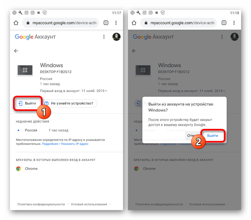 Через браузер на компьютере произвести выход из учетной записи Google на других устройствах можно двумя способами, деактивировав сразу все сеансы или отставив некоторые на свое усмотрение. При этом не стоит забывать и про вариант с отключением каждого нужного девайса по отдельности, используя стандартную возможность выхода, рассмотренную в соответствующей инструкции на сайте.