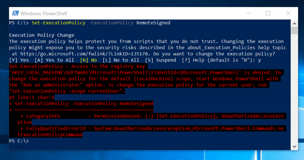 Set-ExecutionPolicy -ExecutionPolicy RemoteSigned