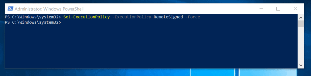As an example, to set the Execution Policy to RemoteSigned use the command below: