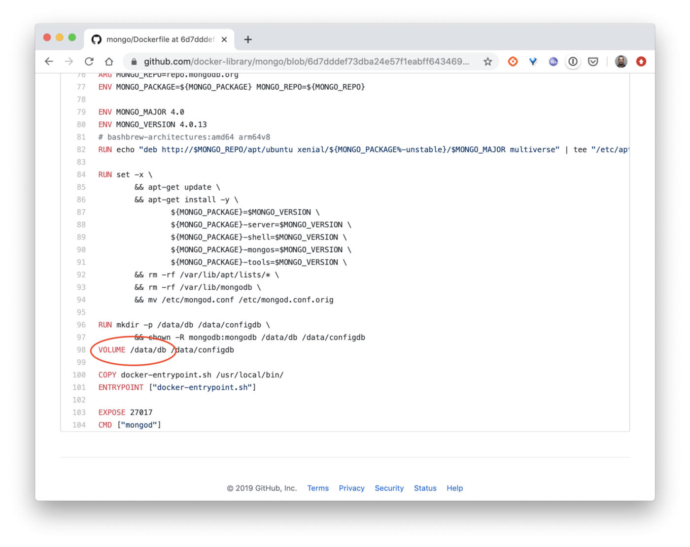 Извлечение Dockerfile, используемого для сборки образа контейнера MongoDB