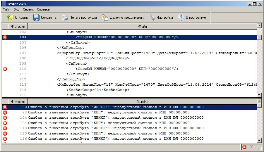 Но при попытке отравить выгруженный отчет в контролирующий орган, возникала обратная ошибка. Так как ИНН и КПП были фиктивными, то при проверке отчета не выполнялись контрольные соотношения.