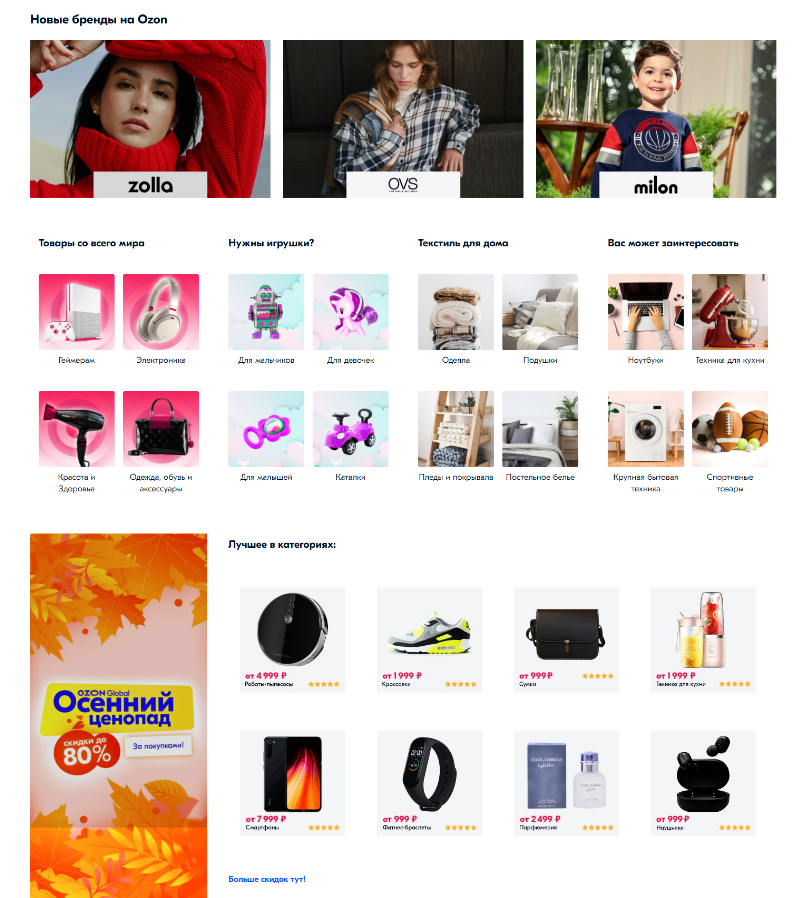 Фрагмент разментки главной страницы — www.ozon.ru — 17-11-2020