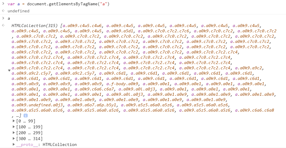 Соберём все HTML-элементы <a>, которые встречаются на главной странице и посмотрим на них:
