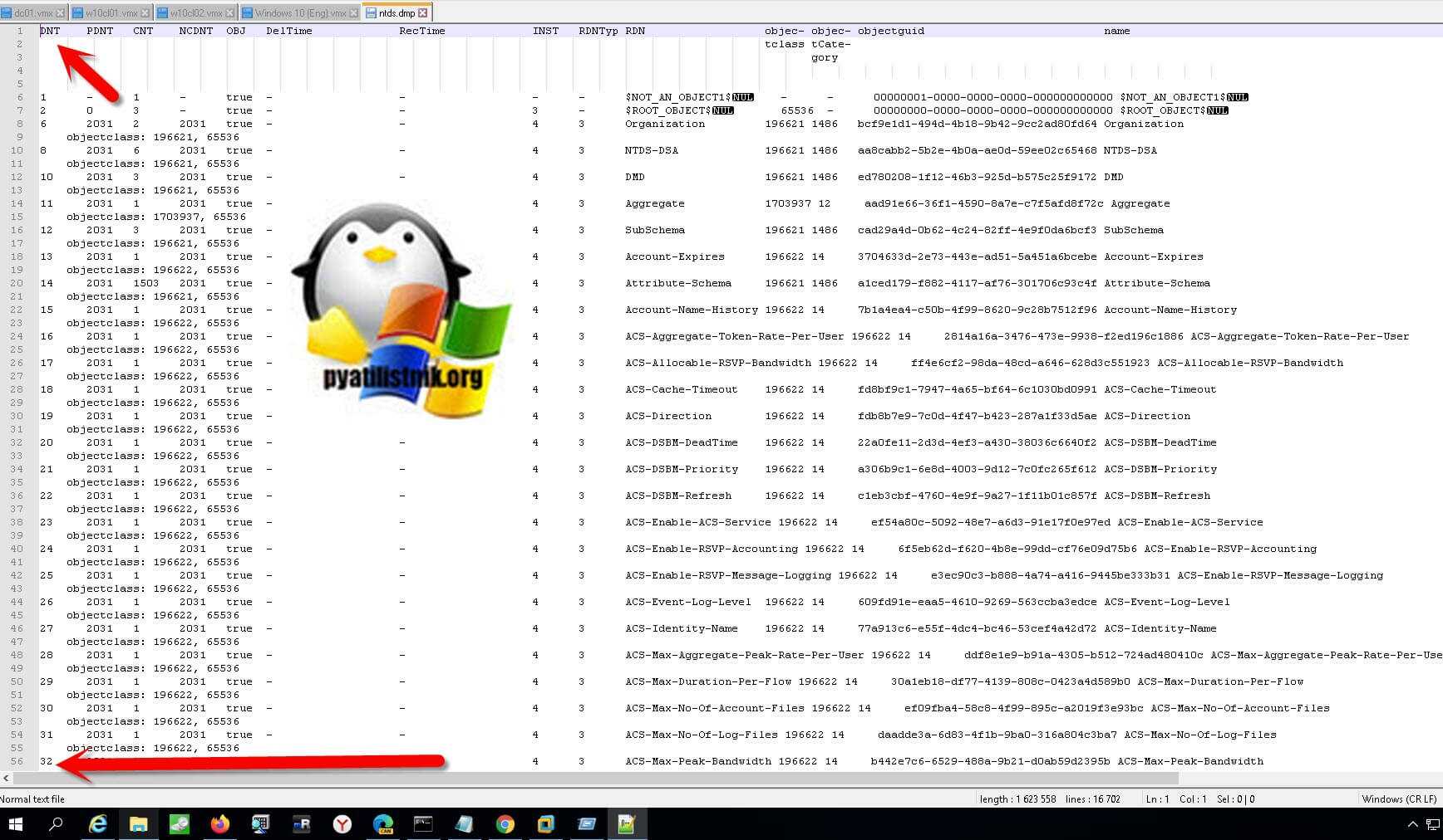 Структура базы данных Active Directory довольно плоская, «DNT» — это номер строки — каждого объект в базе данных. Следующий столбец, PDNT, является родительским объектом объекта (ParentDNT), поэтому вы можете легко просмотреть файл дампа и посмотреть, как выглядит каталог. Из номеров DNT и PDNT вы узнаете дочерние и родительские объекты.