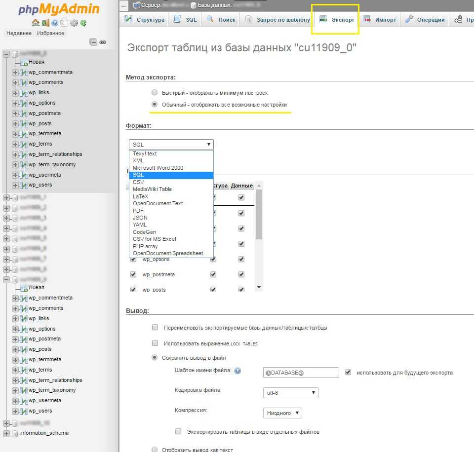 Далее выберите вкладку «Экспорт» и, в зависимости от своих предпочтений, быстрый или обычный метод экспорта. Второй подойдет для тех, кто хочет самостоятельно выставить все настройки.