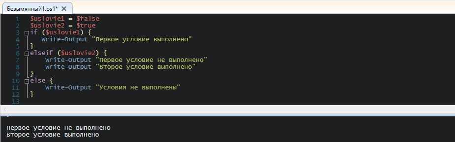 Elseif не является обязательным и выполняется после IF. В отличие от else, который работает в случае когда все операторы вернули False, оператор elseif может проверять на True и False. Переписав предыдущий пример, но с новым оператором, условие будет выглядеть так: