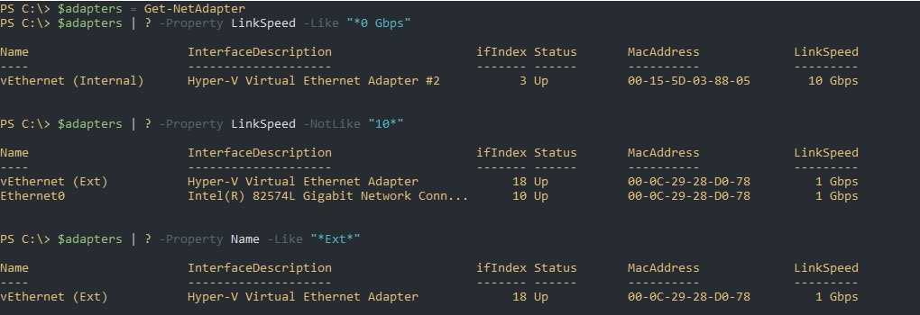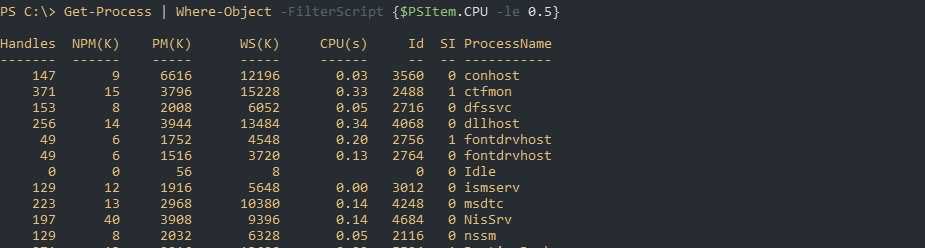 Другие возможности и условия реализуются через параметр FilterScript, который легче понять как ScriptBlock. Через него мы можем использовать выражения и добавлять условия.