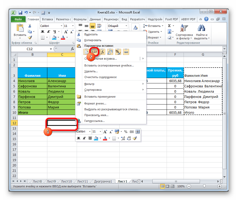 Замечание. Какой бы метод вы ни использовали, объединенное значение в С1 является текстом (обратите внимание на выравнивание по левому краю), даже если каждое из исходных значений является числом. Это связано с тем, что СЦЕПИТЬ всегда возвращает текстовую фразу независимо от типа данных источника