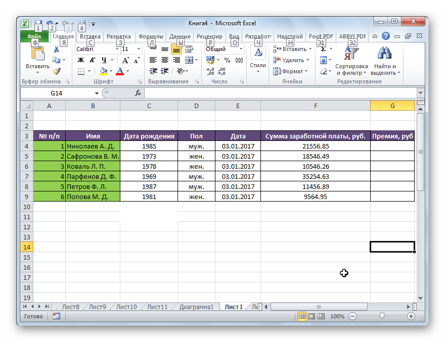 Таким образом, мы получили таблицу с информацией о величине премии для каждого работника предприятия в отдельности.