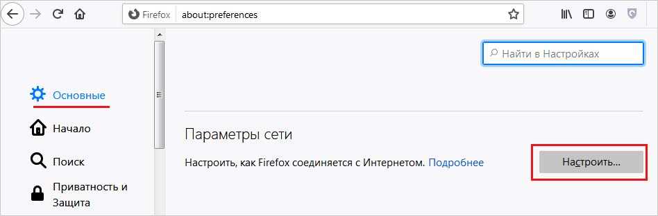Перейдите на вкладку Основные и прокрутите правую часть страницы до раздела Параметры сети. Затем нажмите на кнопку «Настроить».