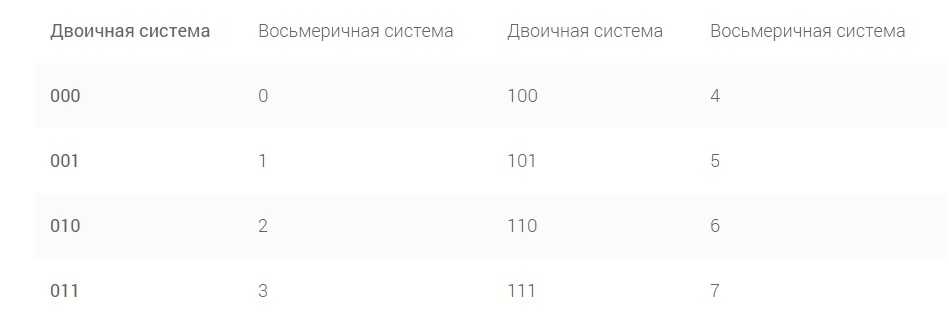 Мы используем десятичную систему счисления, в которой 10 цифр: от 0 до 9. Еще есть восьмеричная система счисления, в которой используется 8 цифр: от 0 до 7.