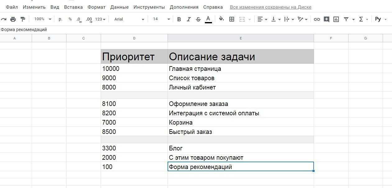 Лайфхак — обратите внимание на столбец Приоритет на примере. Используйте не привычный список 1, 2, 3, 4