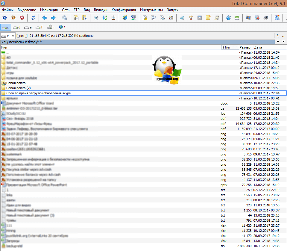 Начнем c Total Commander, я не буду описывать, где ее взять, думаю вы все умеете пользоваться Google. После того как вы скачаете и запустите его, вам необходимо перейти в то место, где у вас располагается папка, которую не получается удалить средствами Windows. У меня это рабочий стол, для перемещения между дисками, в самом верху есть соответствующие значки дисков.