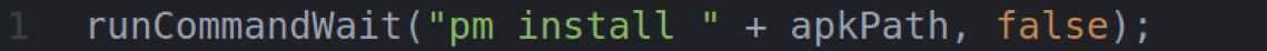 После отработки команды пакет apkPath будет установлен в систему. Ты можешь возразить, что то же самое можно сделать и с правами root, и будешь прав: в данном случае достаточно изменить последний аргумент функции runCommandWait() на true.