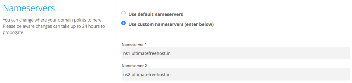 В панели хостинга во вкладке «Add domains» нужно вставить доменное имя. Скопировал адреса Nameservers для настройки домена из хостинга. У вас могут быть свои адреса: