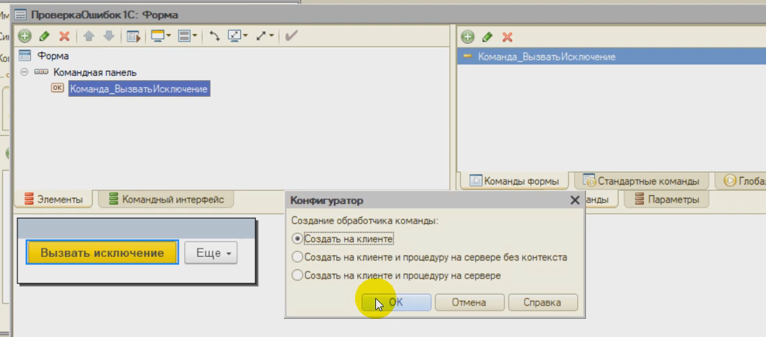 Так же для работы сделаем обработку, в которой просто будем вызывать ошибку.