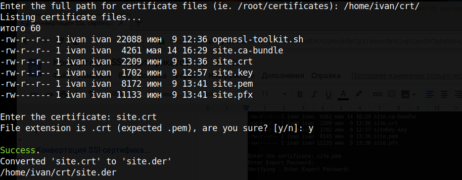 openssl x509 -in new.pyatilistnik.ru.crt -out new.pyatilistnik.ru.der -outform DER