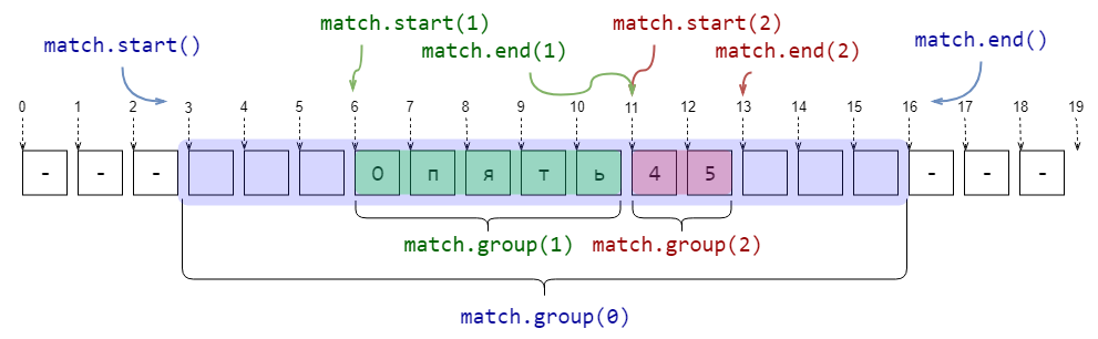 Подготовив шаблоны для отдельных частей регулярного выражения, соберём их вместе: