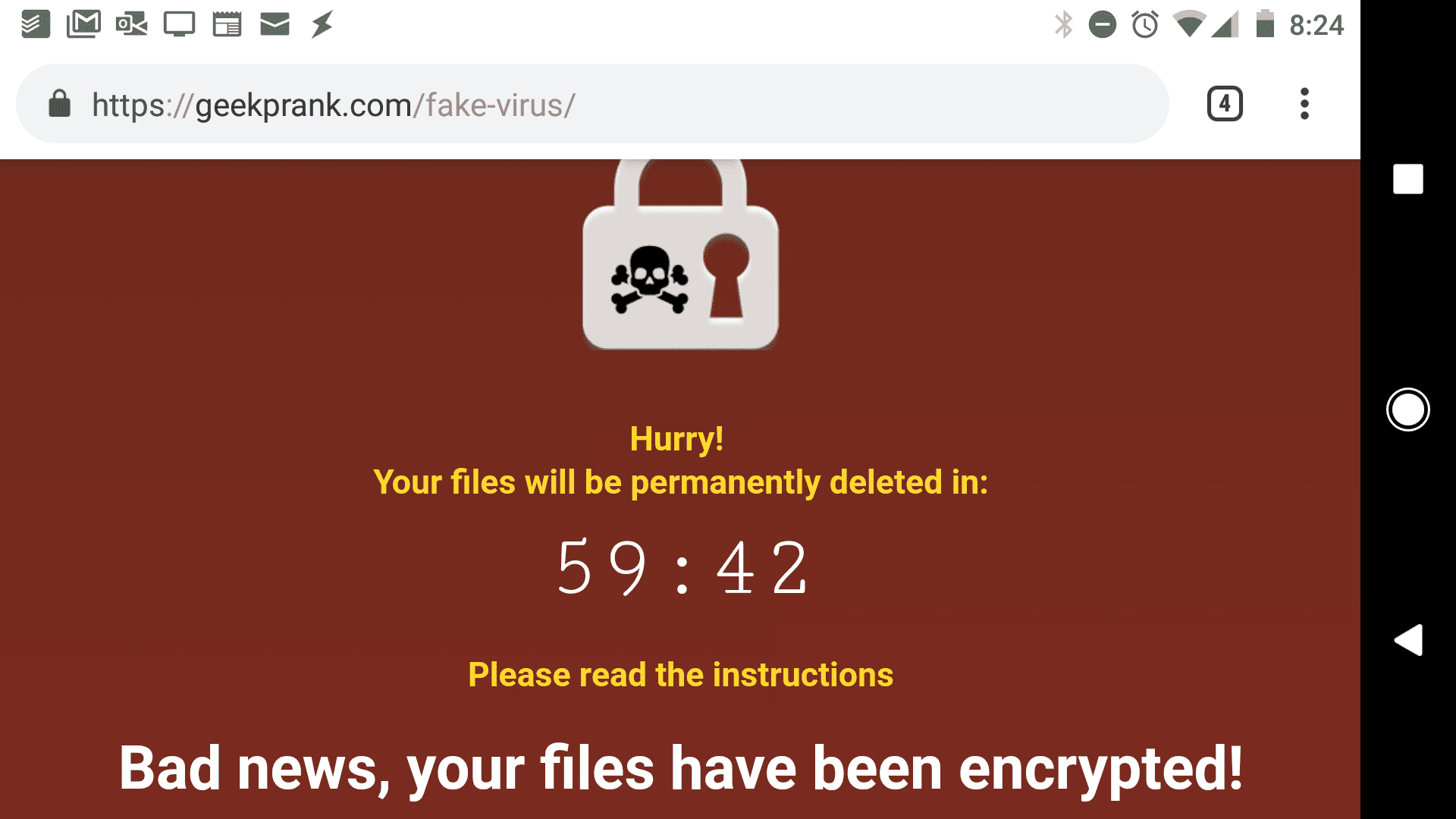 В большинстве случаев пользователи Android видят всплывающее предупреждение о фальшивых вирусах только при использовании веб-браузера для посещения вредоносного веб-сайта.