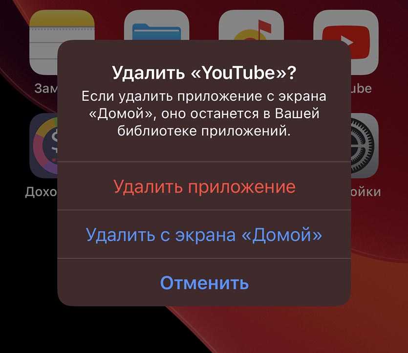 Задержите палец на иконке любой программы, выберите пункт Удалить приложение, а в последнем диалоговом окне выберите пункт Удалить с экрана «Домой».