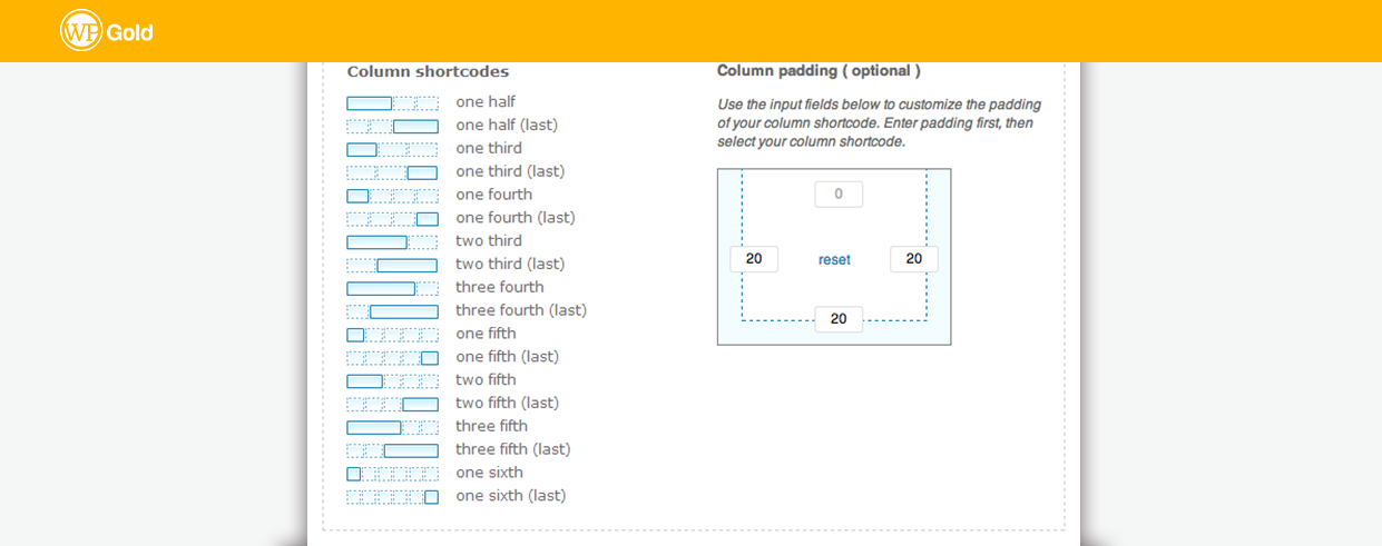 Интересное решение, в особенности для тех вебмастеров, которые часто меняют темы или их настройки. Все функции сохраняются даже при смене шаблона. Доступно около 24 шорткодов для создания кнопок, блоков, ценовых таблиц, переключателей. После установки, в редакторе записей/страниц появляется кнопка добавления shortcode. Во всплывающем окне имеется строка выбора и некоторые параметры. Настройка легкая и не требует особых навыков.