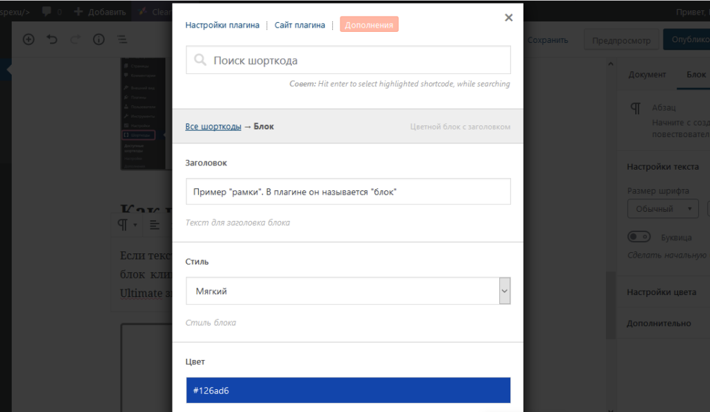 Пример ‘рамки’. В плагине он называется ‘блок’