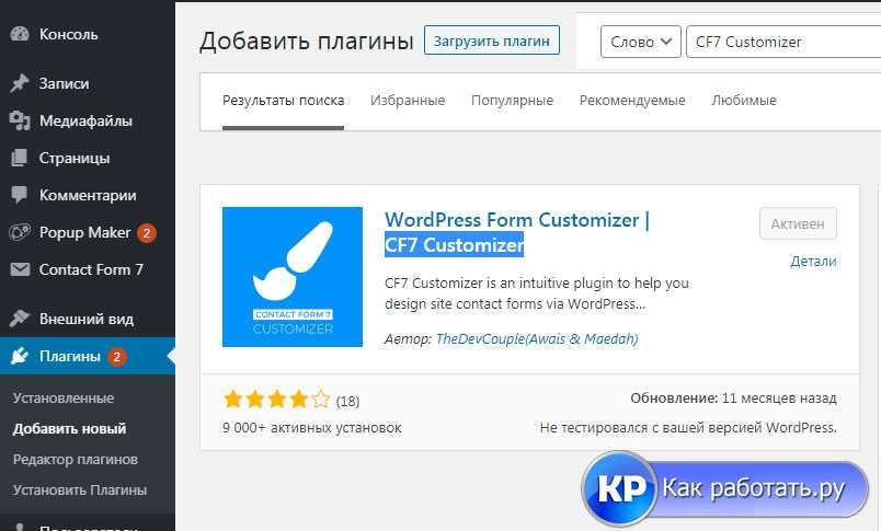 Для этой ели я всегда использую простенький плагин, который носит название «CF7 Customizer», скачать вы его также можете через раздел «Плагины-Добавить новый».