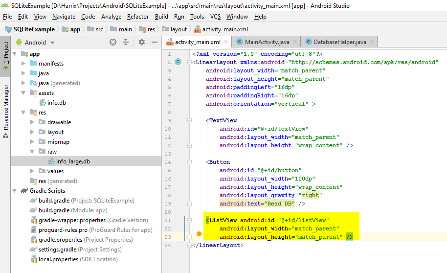 Для открытия и подготовки БД в Android используется наследник класса . Мы тоже создадим наследник этого класса , но он будет сильно модифицированный, так как мы будем работать с готовой базой данных, а не создавать ей с помощью SQL запросов: