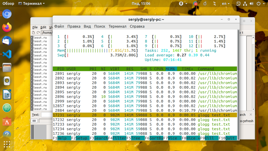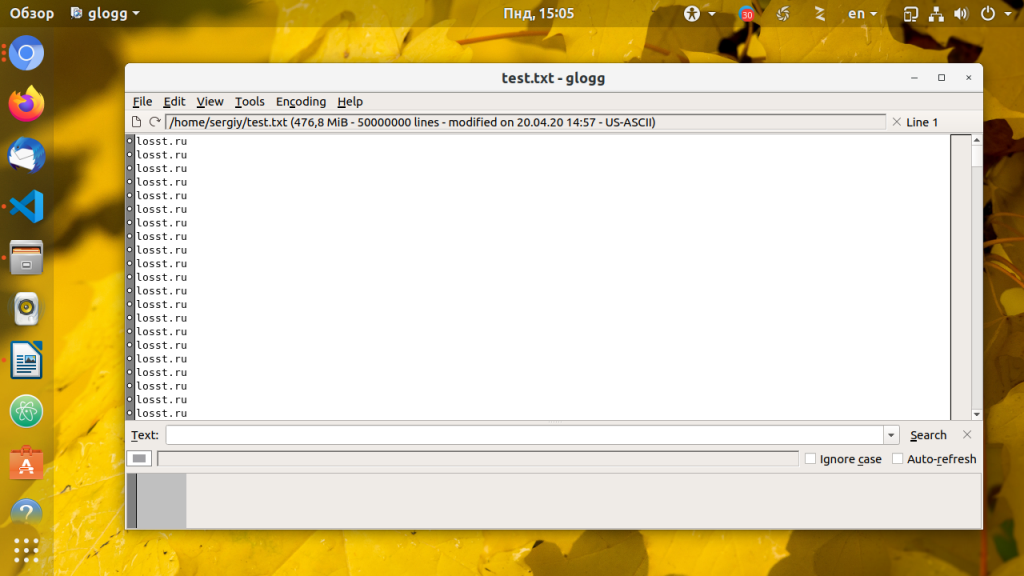 По сравнению с Vim, Glogg более легкий, для загрузки файла журнала размером 500 Мб было использовано всего лишь 141 Мб оперативной памяти.