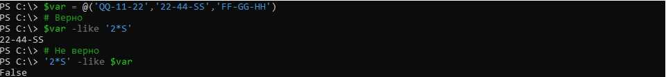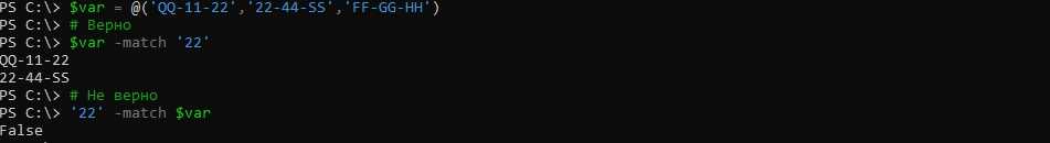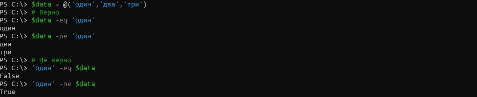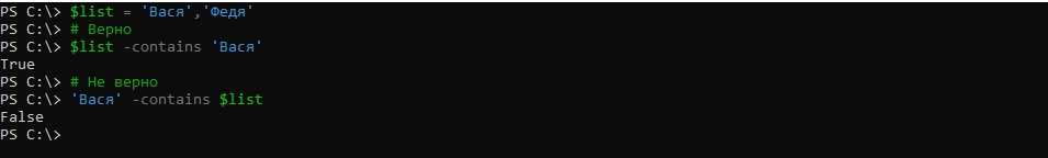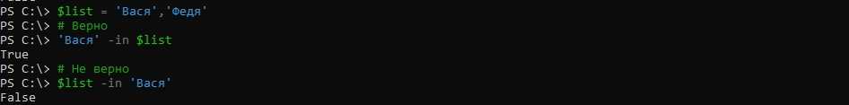 Этот оператор так же можно использовать для поиска в массиве Powershell.