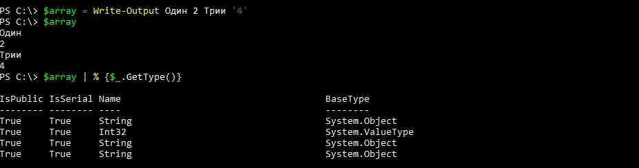 На примерах выше мы получили данные по их индексам. В отличие от большинства языков в Powershell мы можем указывать несколько индексов, которые хотим получить. Так же можно вызвать один и тот же элемент неограниченное количество раз: