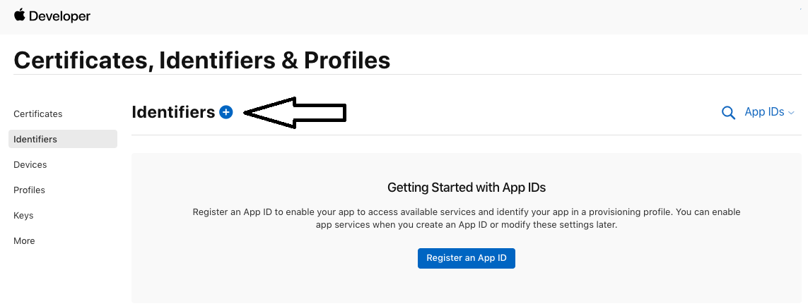 Нажмите на синюю кнопку «+» рядом с заголовком Identifiers.