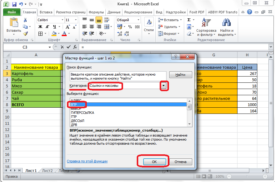 ВПР запускается путем вставки оператора «ВПР» из «Мастера функций» в ту ячейку, где данные должны отображаться.