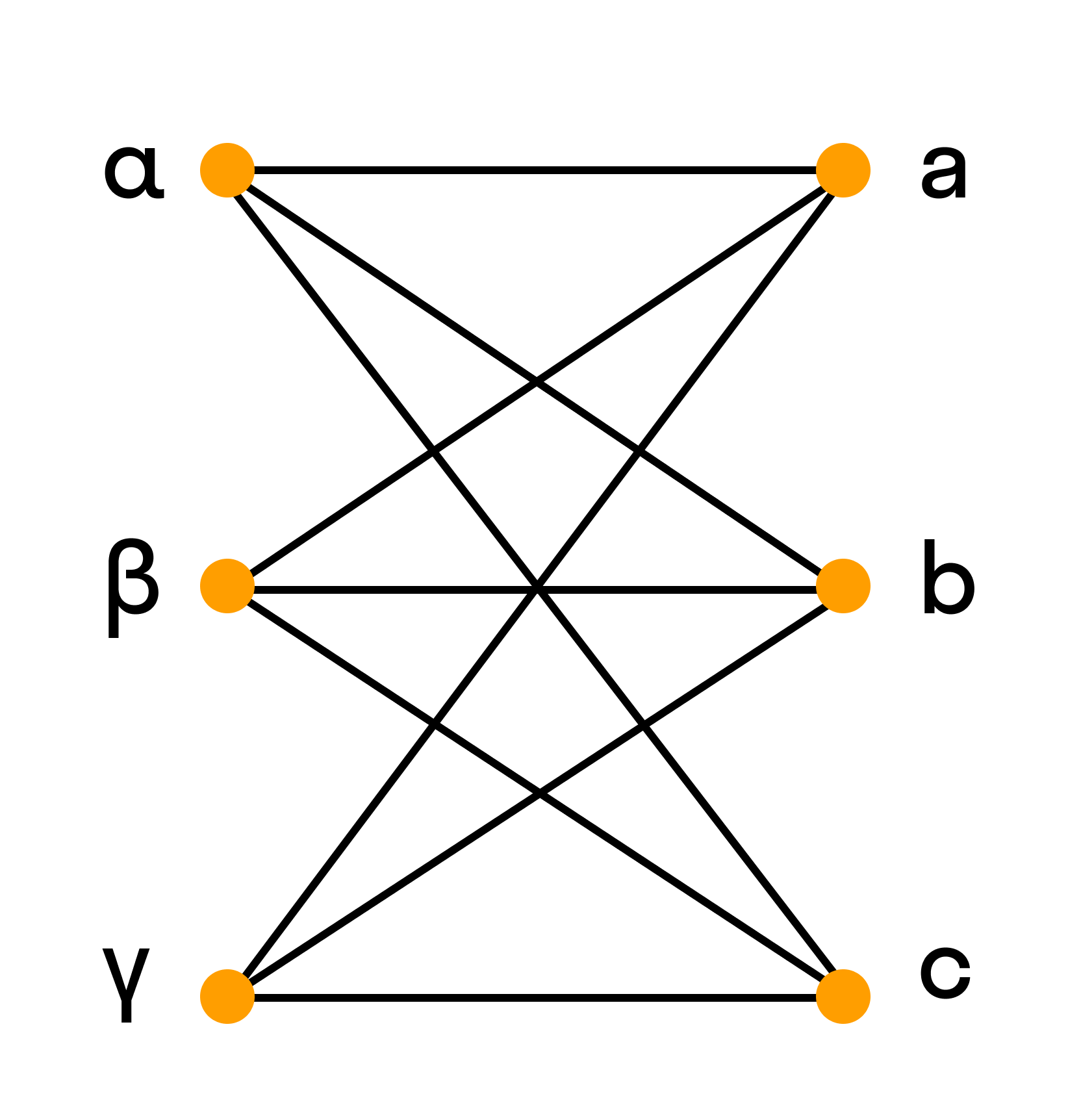 Например, полный двудольный граф состоит из двух множеств вершин и из всевозможных звеньев, которые соединяют вершины одного множества с вершинами другого множества.