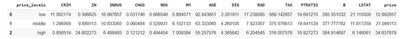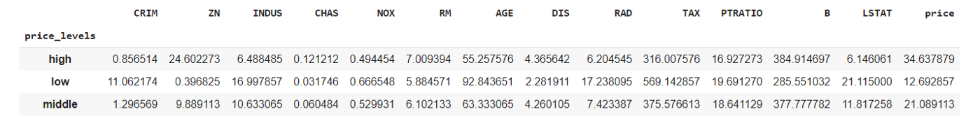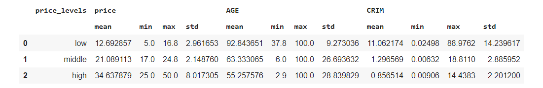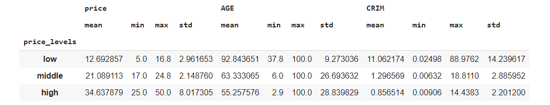 df_price = df.groupby(by=,as_index=False).agg({'CRIM':,'price':})df_price