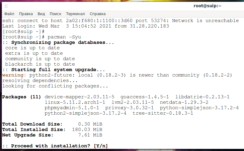 sudo pacman -Syu