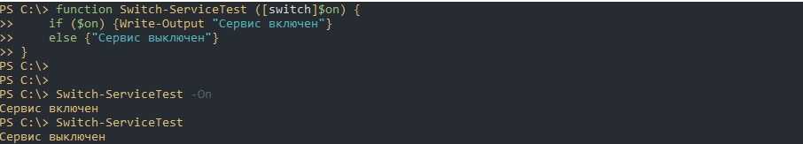 Со switch так же удобно передавать булевы значения. В примере ниже если указан ключ -On сервис включится, а если его нет выключится: