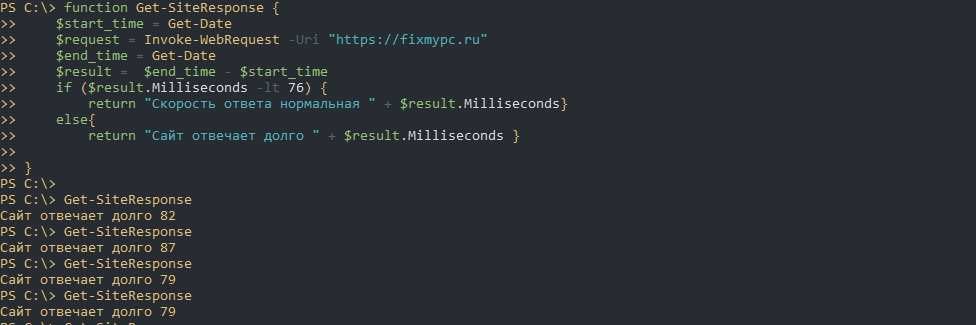 Ниже приведен пример, где в зависимости от скорости загрузки основной части сайта будет возвращен разный ответ. Если скорость ответа меньше 76 миллисекунды нормальная, в случае если более долгого ответа вернется другой результат: